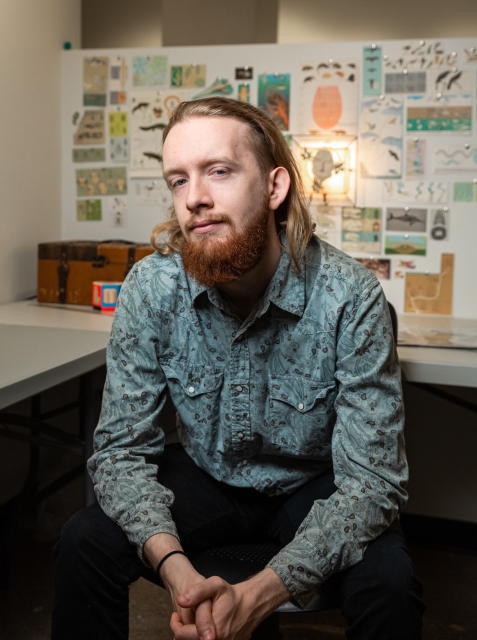 I am Simon Knuth, pseudonym Psymon, and I am a Chicago native and senior in fine arts and graphic design at Columbia College Chicago. Through my artistic practice I reconstruct and explore worlds outside of our own. This usually takes the form of the distant past or future, worlds I have been fascinated by since my childhood spent in natural history and science museums, though sometimes I recreate other places, like those we experience in our memories or dreams. Since my work often deals with scientific topics, I have found it effective and interesting to appropriate the visual and pedagogical language of museum exhibits in many of my installations. I believe doing so also encourages viewers to approach my work as serious speculation and exploration, rather than as pure science fiction or fantasy.